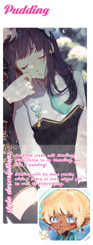 Upon purchasing any art work or adoptable designs from the artist, the client is considered to have read and agreed to all the terms listed. By violating any of the terms repeatedly or committing a major personal offense to the artist may lead to permanent blacklisting . The client will no longer allowed to purchase or participate in any deals, giveaways, auction bidding in the future.The artist does not consent for any of their works to be listed and minted as NFTs or used for AI database training.All payments must be fulfilled within 24-48 hours upon notice of commission acceptance.