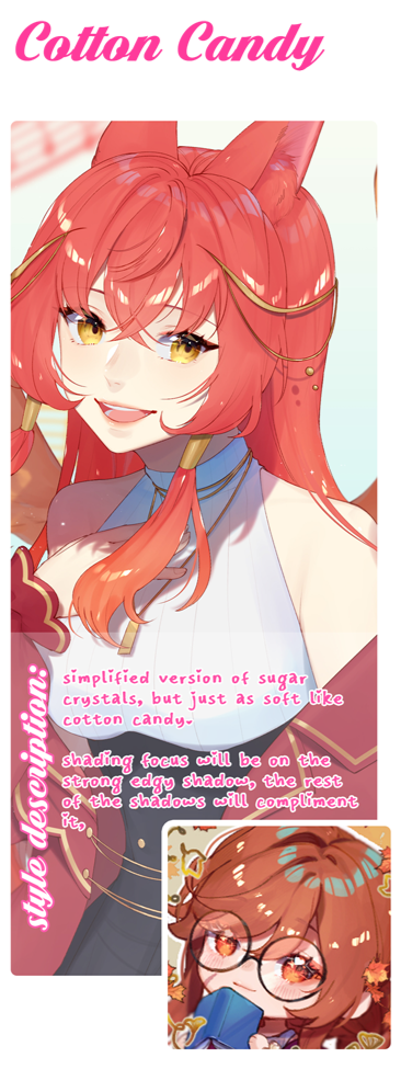 | Some examples, but not limited to; Vtuber reference sheets, Vtuber models, Personal branding and/or logo(s), Commercial covers and/or original songs, Physical or digital merchandise (clothing, acrylic charms, bookmarks, prints, stickers, etc.) |